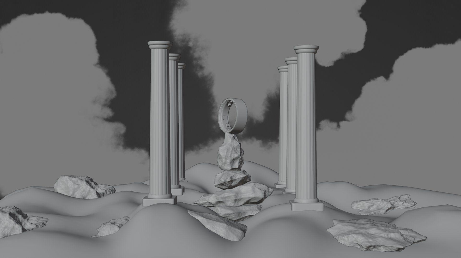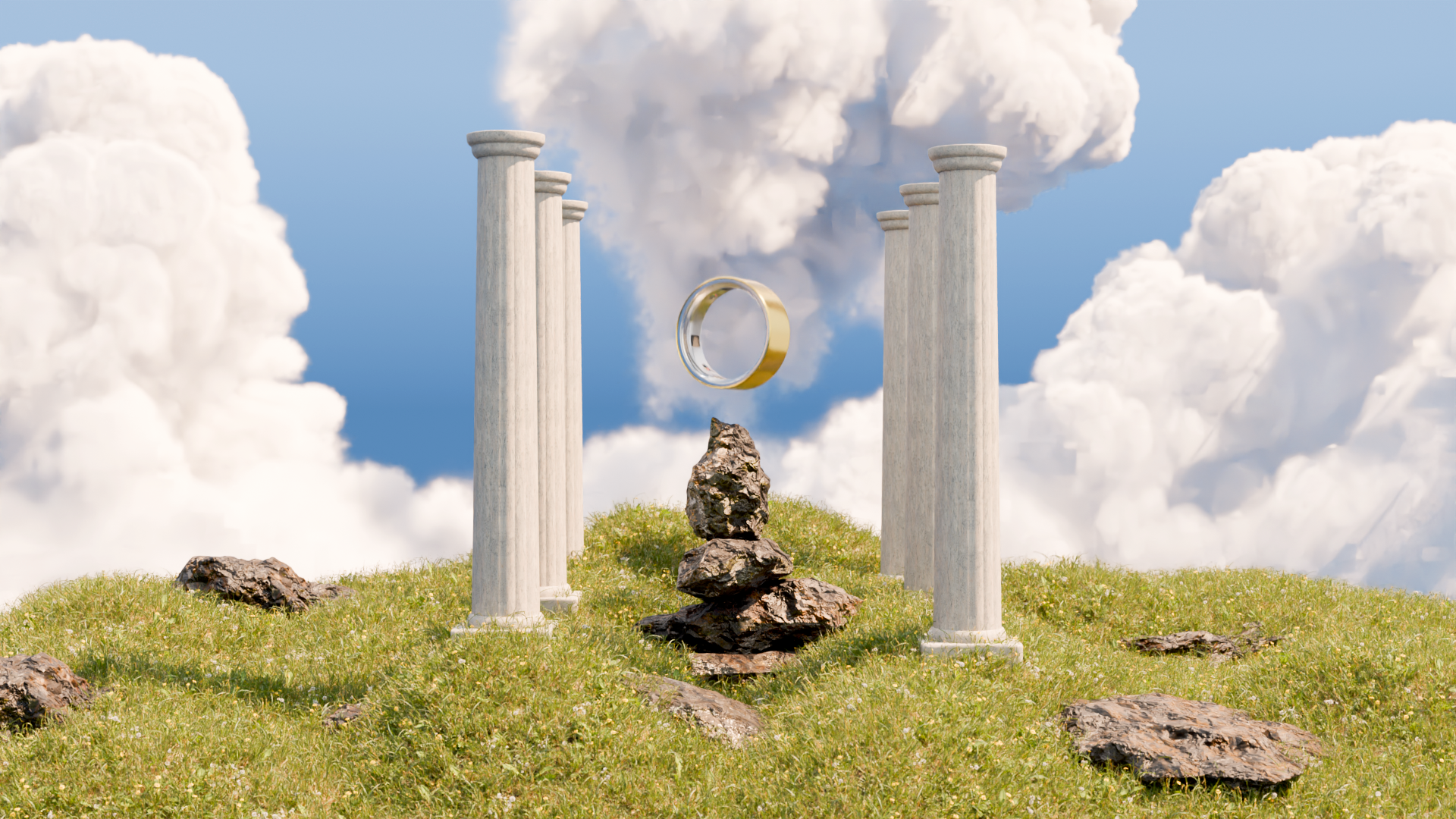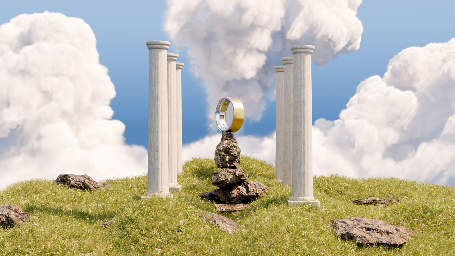 I developed this project as a way to explore environment building, cloud generation and an Add-on for Blender3D called GSscatter. It allows for grass generation and faster scene composition, which was my main focus for this project. The product displayed is the new Oura Ring, that I also modelled and textured.